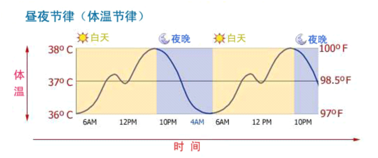 生物钟本质上是一种昼夜节律(Body Temperature Rhythm),体温升高人往往感到清醒,反而则感到困乏