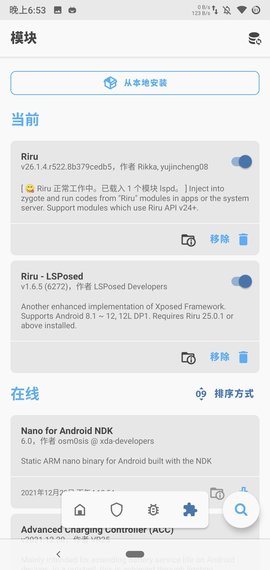 安装后重启,再次打开Magisk app,选择下方按钮的模块